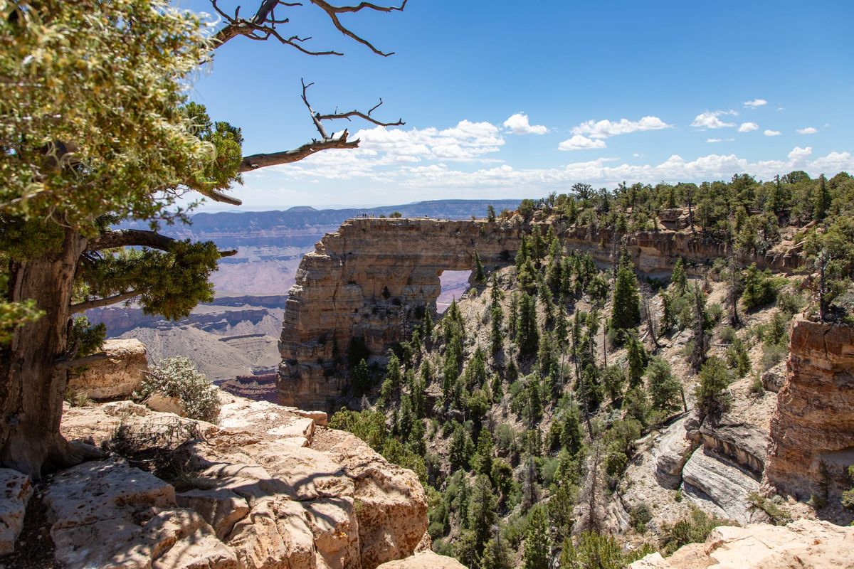 Up on the North Rim of the Grand Canyon, approximately 0.25 miles before the Widforss Trailhead (named for the early 20th-century Swedish-American painter Gunnar Widforss), a faint path heads across a meadow and leads to a small cave. The cave is empty and not much more than an overhang