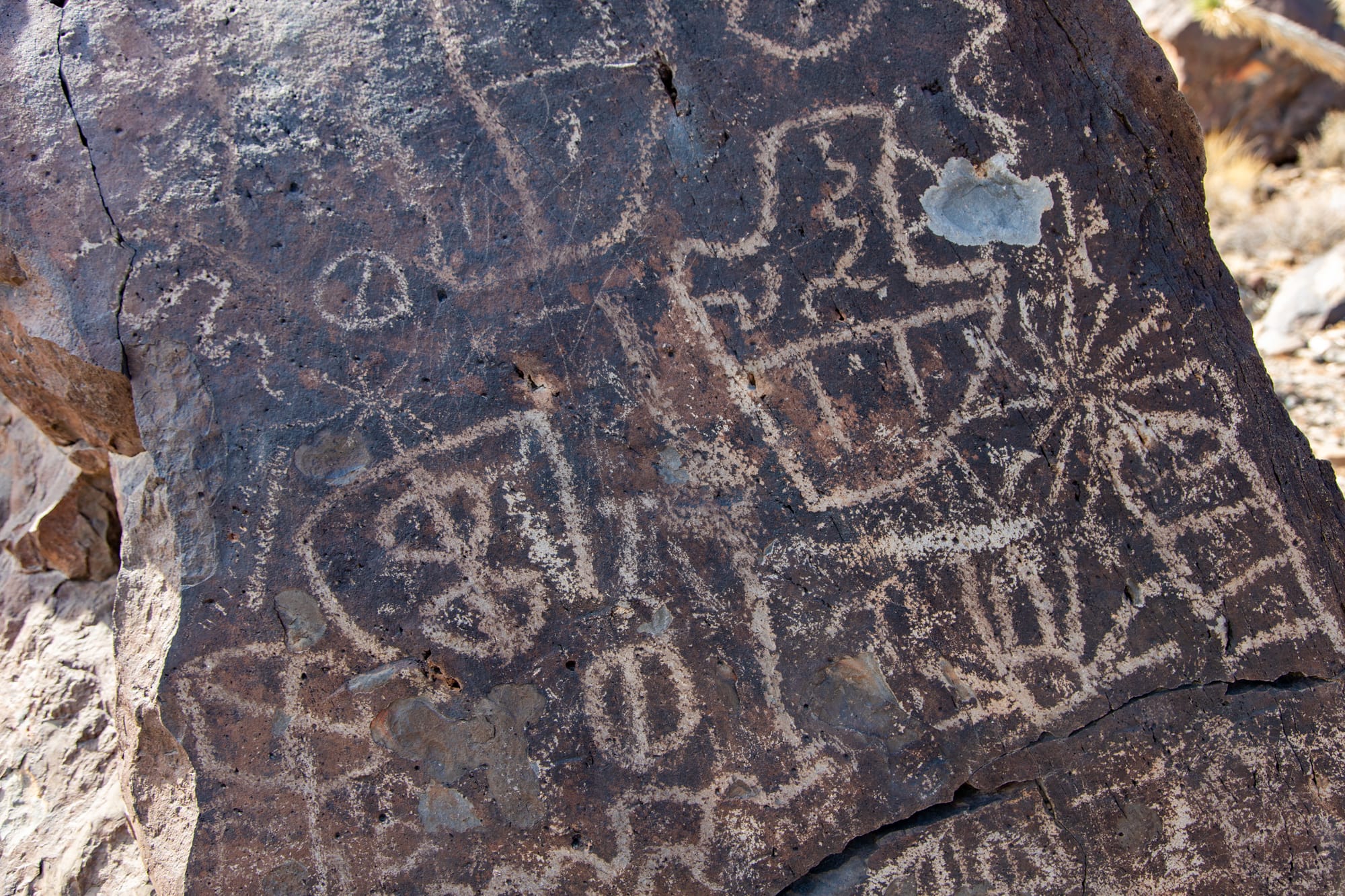 The petroglyphs here are predominantly abstract designs. Their meaning is lost to time. Interestingly though, some images show evidence of being "refreshed" - scratched or re-pecked. This was possibly done to tap into the symbol's existing power, but no one knows for sure.