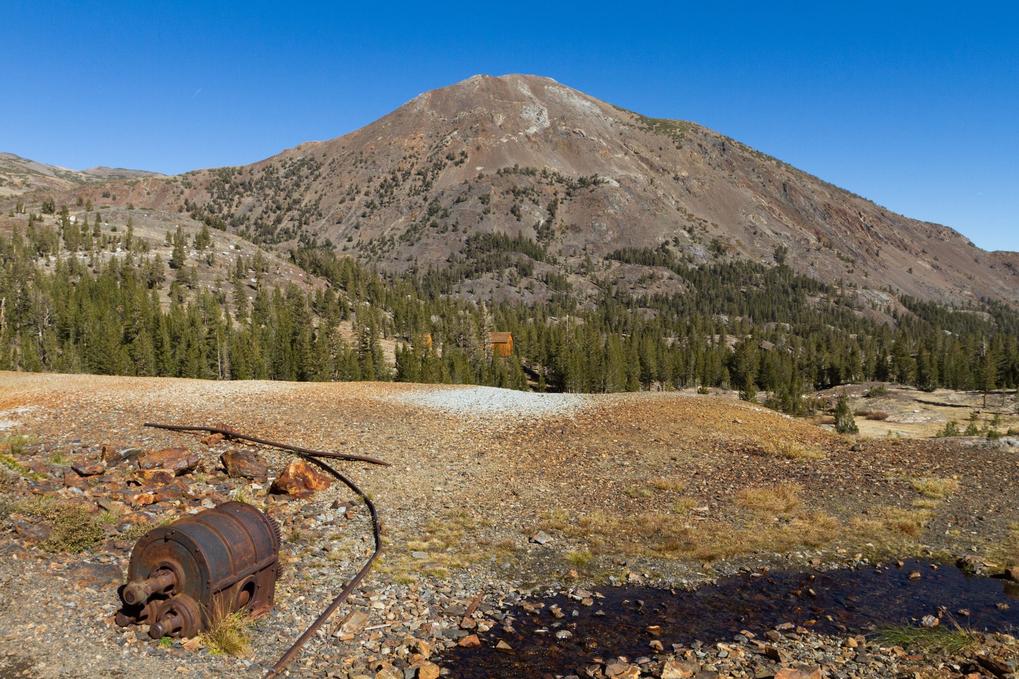 Most of the buildings and equipment used to drive the Great Sierra Tunnel are gone. A few pieces of equipment remain at the mine portal. The Forest Service has recently stabilized the two remaining cabins. More than a dozen buildings were here at one time.