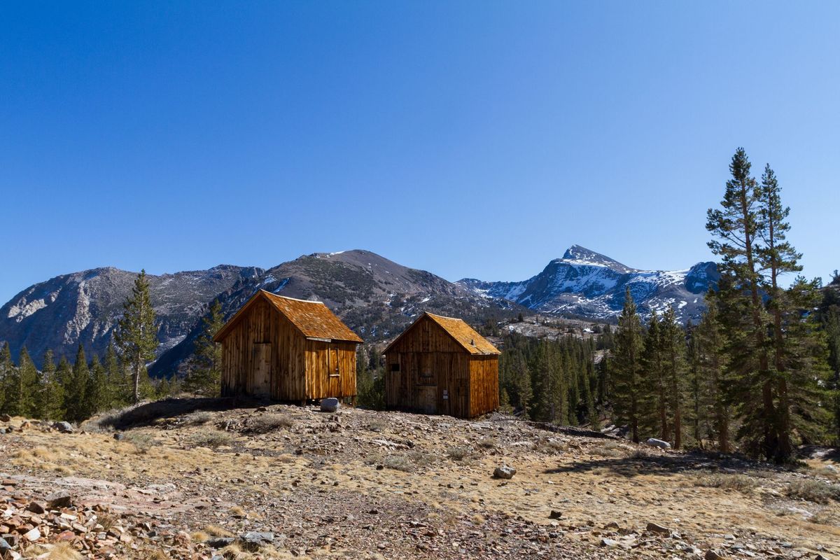 Most of the buildings and equipment used to drive the Great Sierra Tunnel are gone. A few pieces of equipment remain at the mine portal. The Forest Service has recently stabilized the two remaining cabins. More than a dozen buildings were here at one time.