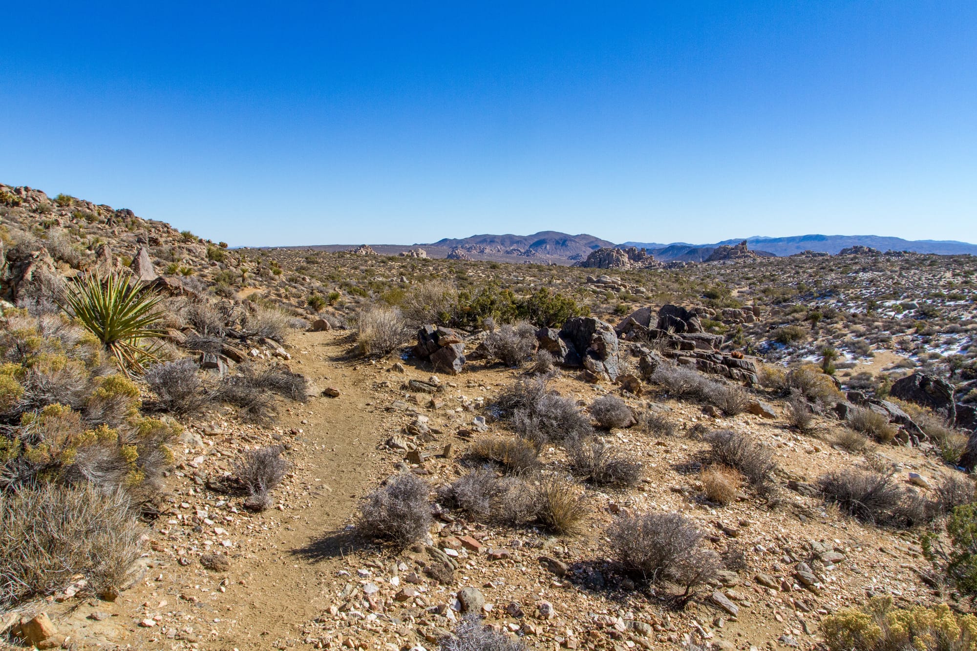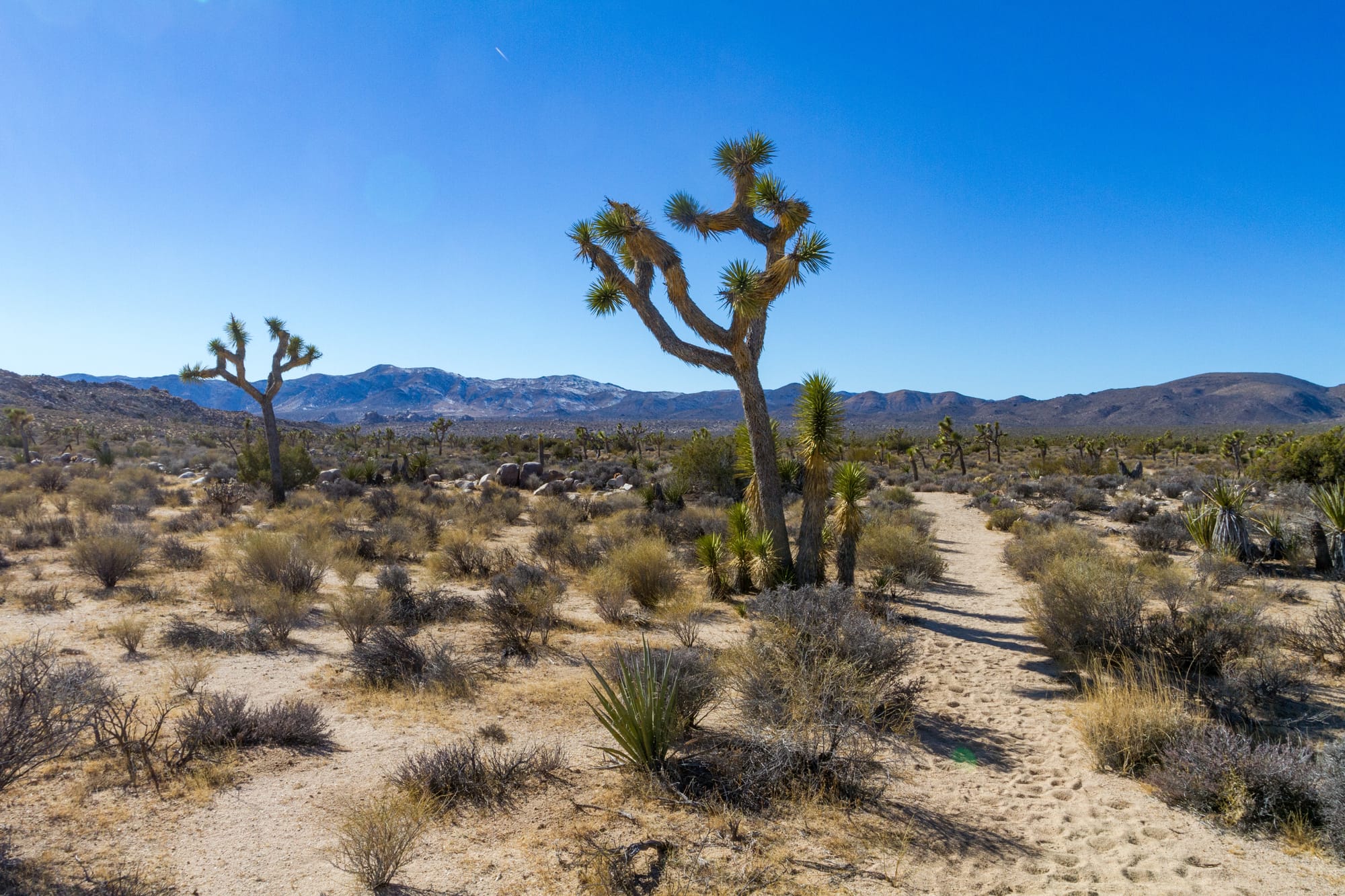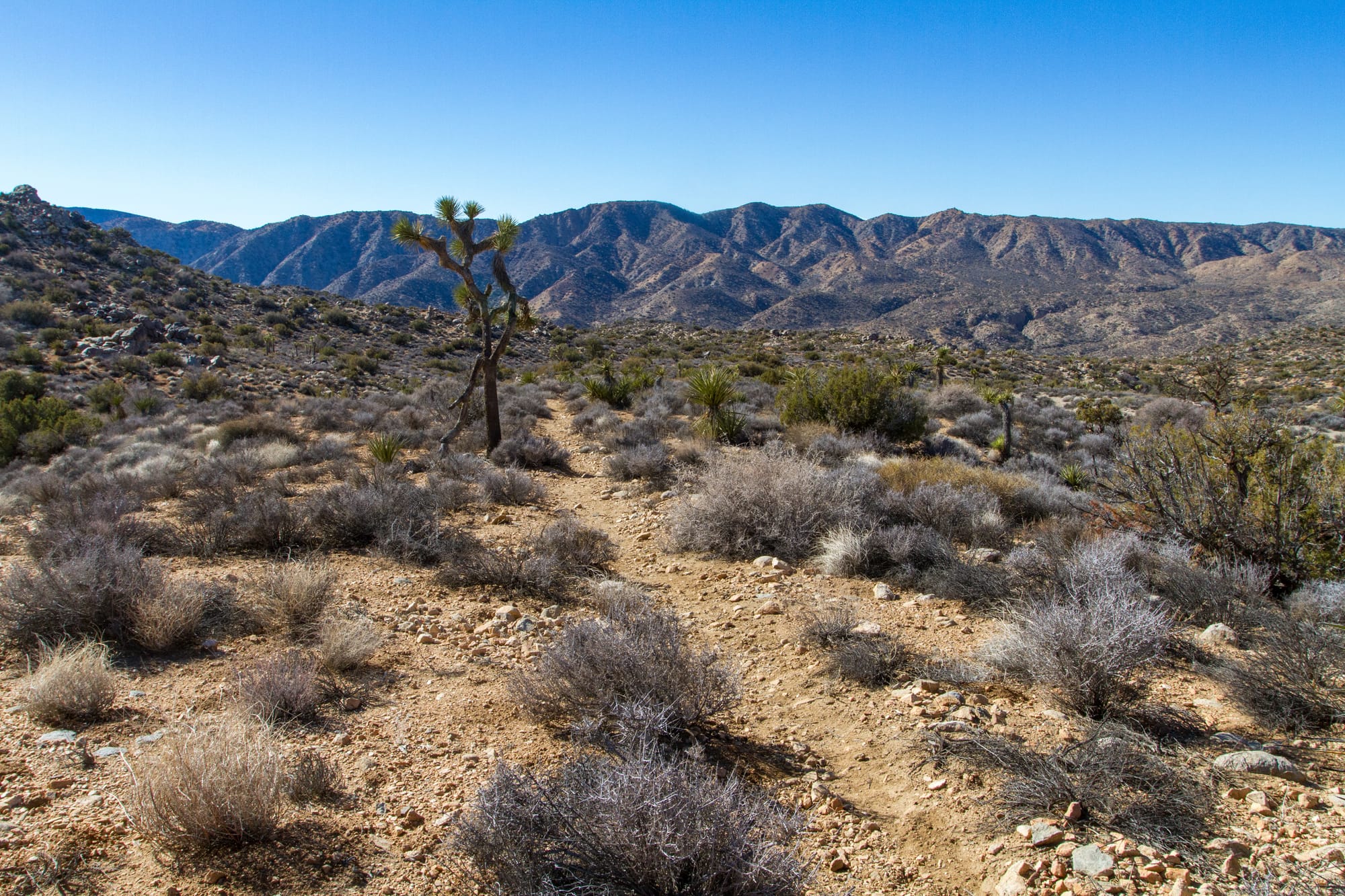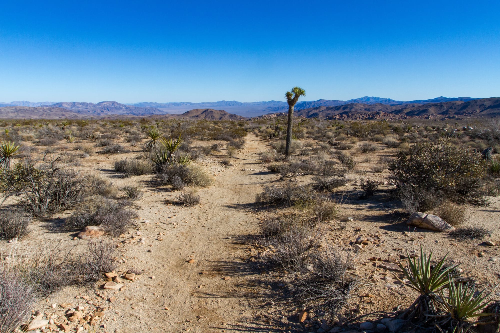 The California Riding and Hiking Trail was part of an ambitious 1940s California State Parks project to create a statewide trail network. Due to land ownership issues, it was never completed. However, the sections within Joshua Tree are complete and provide an excellent opportunity for experienced hikers to explore the park's vast scenic backcountry and do some backcountry camping if desired.