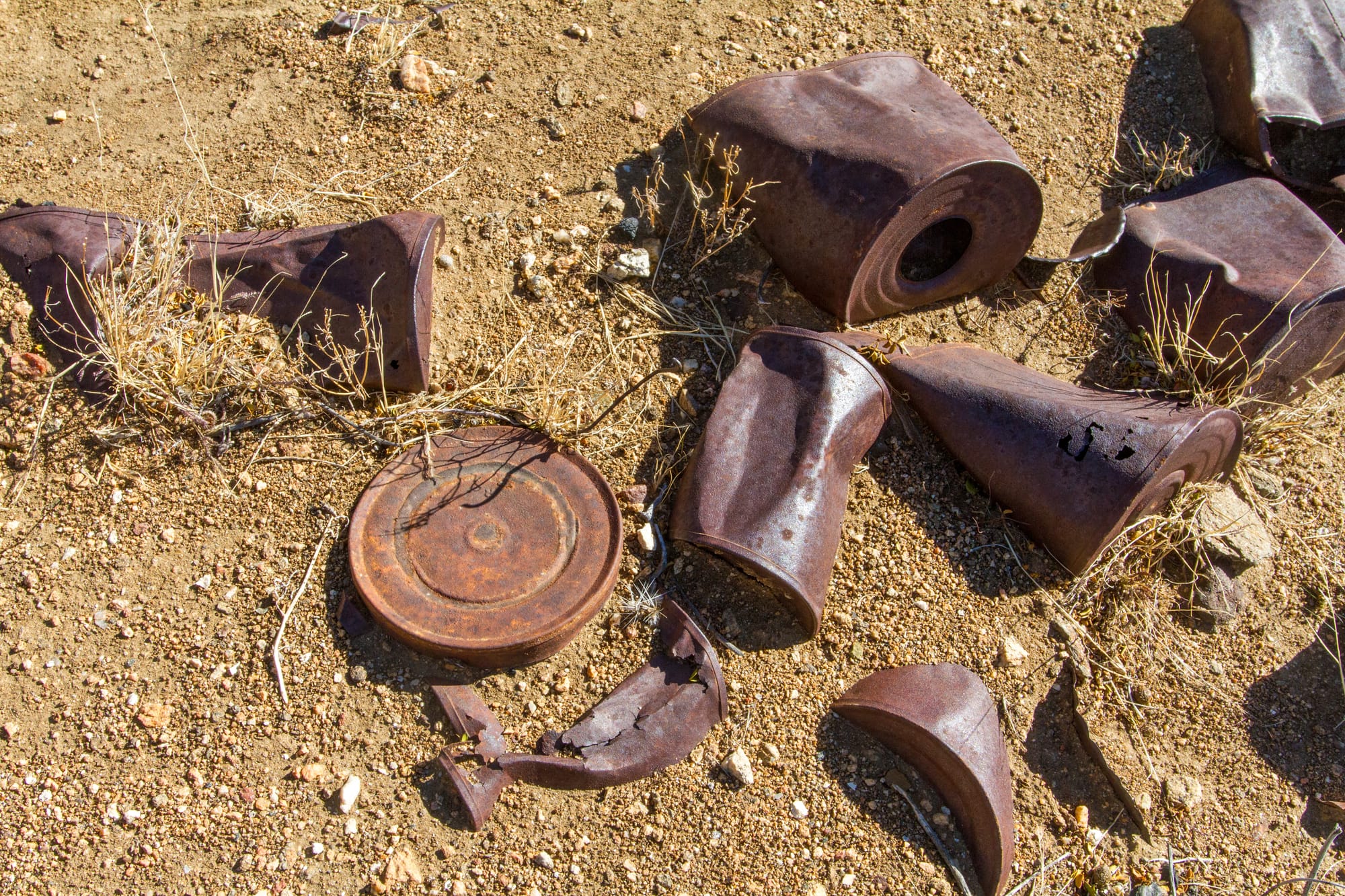 The trail heads east across the flat desert and touches the very southern tip of Ryan Campground in 0.7 miles. (This makes for a great starting point if you are camping.) From here, the trail climbs up a broad canyon between Ryan Mountain and the Lost Horse Hills. The geology noticeably changes here as you cross into the hills. Dark metamorphic gneiss formations, probably of the Precambrian era, predominate, with a few outcrop spires of White Tank quartz monzonite (like those seen at Ryan Campground). As the trail begins to climb, at 1.26 miles in, watch for the remains of the pipeline that once carried water from Lost Horse Well to the Lost Horse Mine.