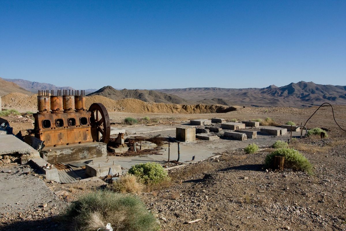 Much of the remaining mining equipment has been stolen since my photos were taken. A May 25th, 2012, article in The Pahrump Valley Times entitled “Stealing History” reported on it. My photos below are old.