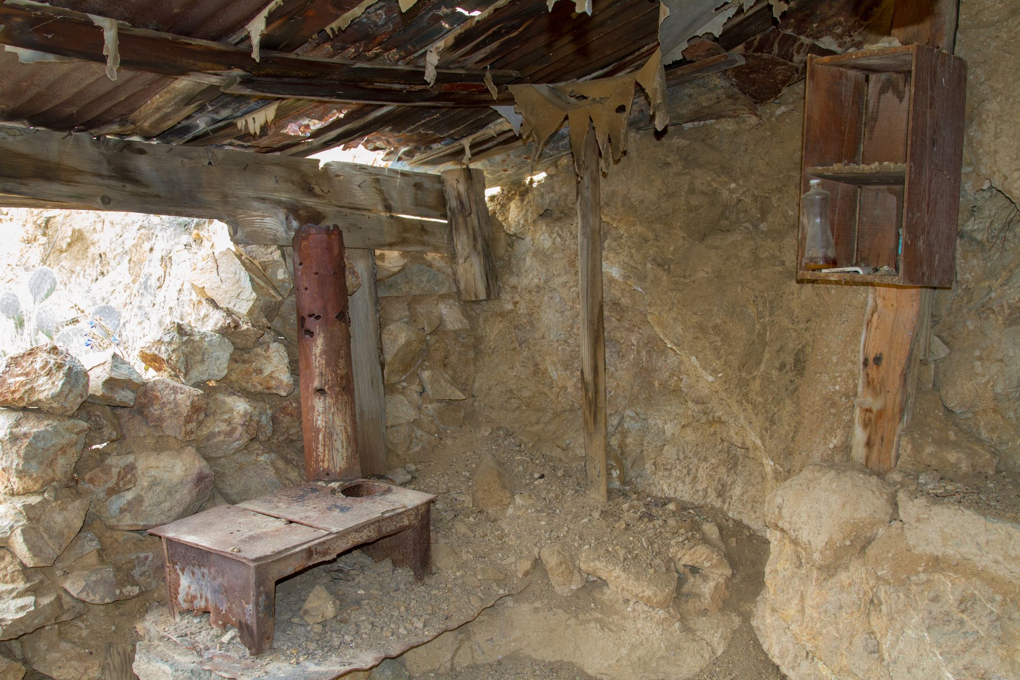 This is a small mine out in the East Mojave. History is vague on this prospect, but it is probably old and reworked a few times. The mine consists of a few short adits, one with a winze filled with crystal clear water and a small stope.