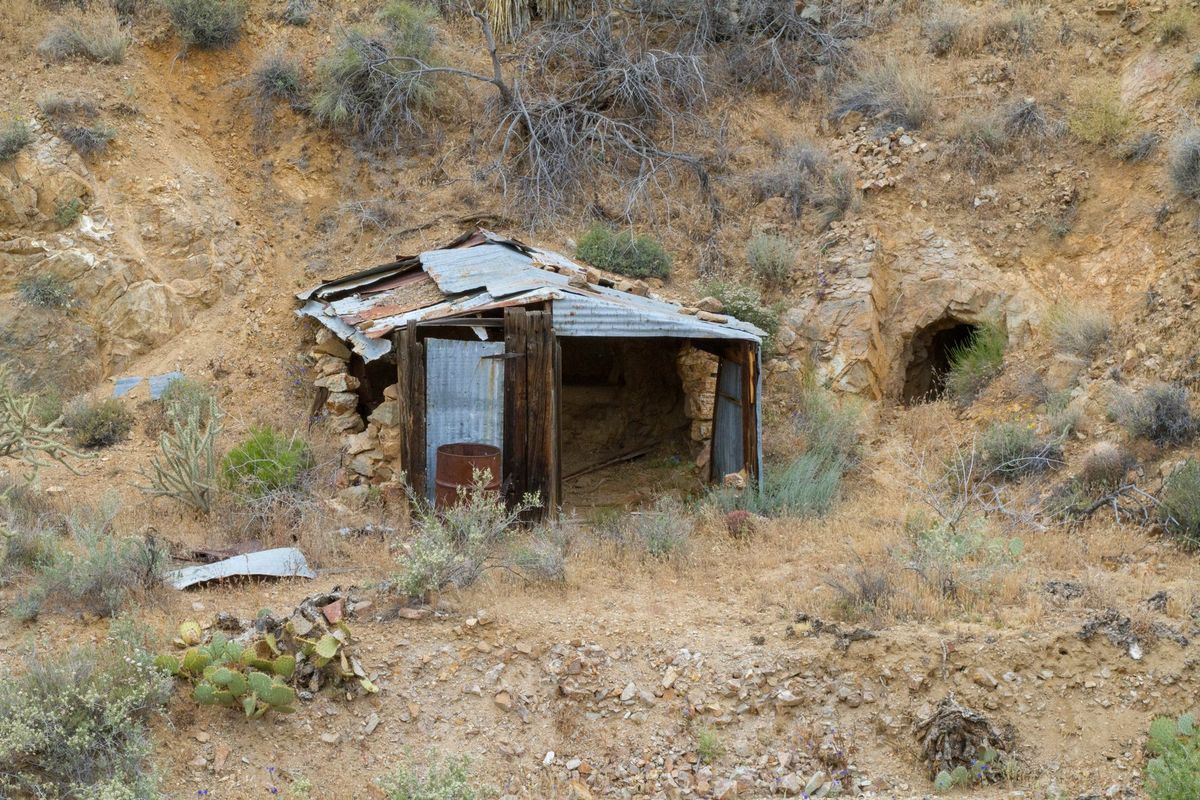 This is a small mine out in the East Mojave. History is vague on this prospect, but it is probably old and reworked a few times. The mine consists of a few short adits, one with a winze filled with crystal clear water and a small stope.