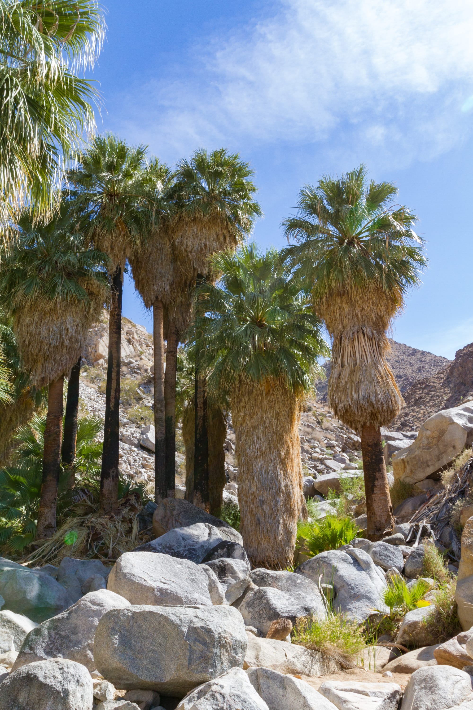 The trail was once part of an old Indian trail. The Serrano and Chemehuevi Indians knew this oasis well, ate fruit from the palms, and used the fronds in their shelters, sandals, and baskets.