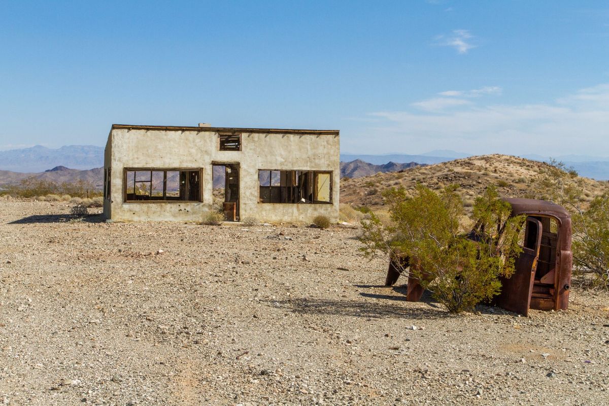 On the eastern slope of the rugged Old Woman Mountains are the remains of two weather-beaten cabins. Unlike the area's earlier gold and silver prospects, these mines targeted barite, a mineral primarily used in oil drilling. Barite (or Baryte) is a mineral consisting of barium sulfate, generally white