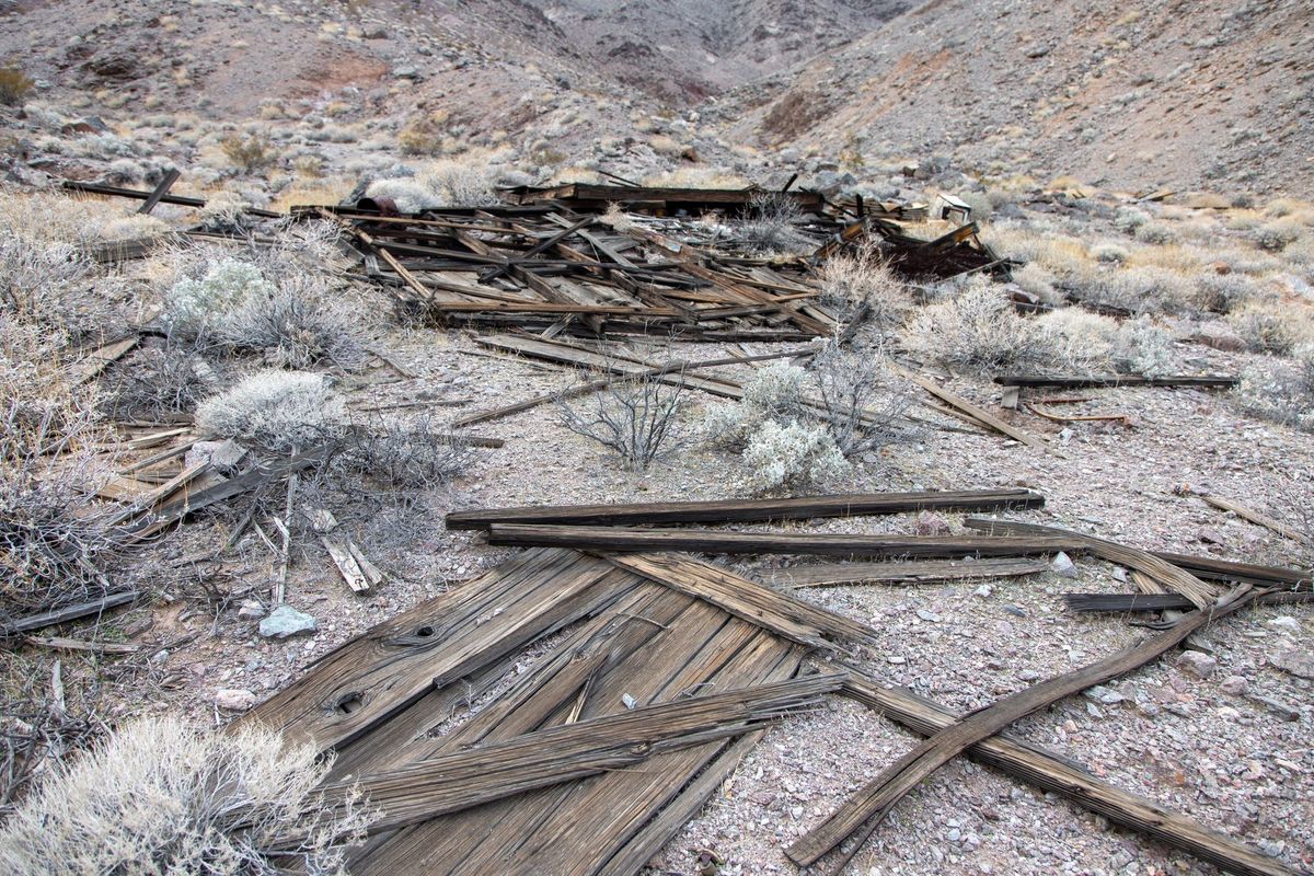 I stumbled across this remote mining prospect and cabin site in the wilds of Death Valley. I’ve looked through my research books but couldn’t find any information on this place. Judging by the debris, the cabin dates from the 1950s or earlier, but I’m only guessing. Someone lived here for a while, though, and developed this prospect. No one has been here for a long time. I certainly didn’t see any modern trash or even any footprints.