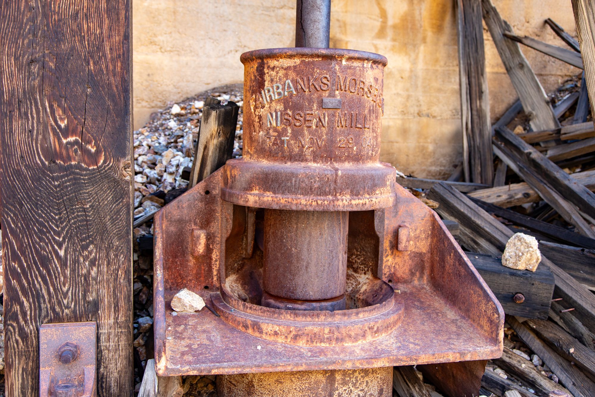 Over in eastern Death Valley, just north of the Keane Wonder Mine, is the Indian Mine in Monarch Canyon. It is a small mine that was worked for gold with only minor workings and was never profitable. What makes it a worthwhile visit is the mill and its remaining single Nissen stamp mill.