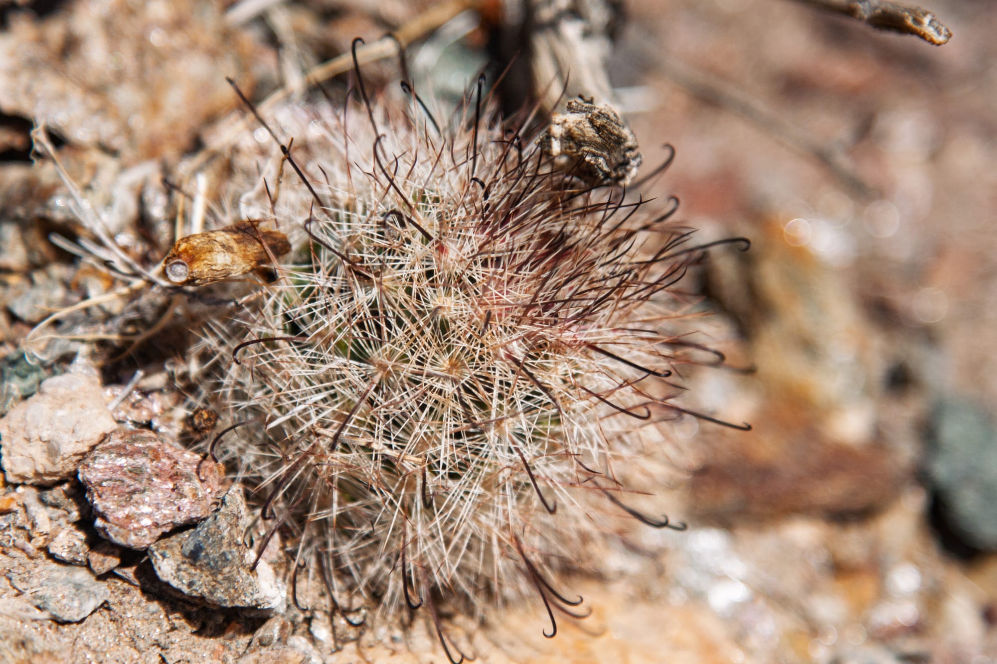 The remains of the mine cling to the mountainside in a place that seems almost impossible to work. At 3,000 feet long with 1,100 feet of vertical drop, the tramway is an impressive piece of engineering. Some of the double rope tram remains, including cables and towers, but the power cable is missing. We saw pieces of buried cable in the canyon bottom.