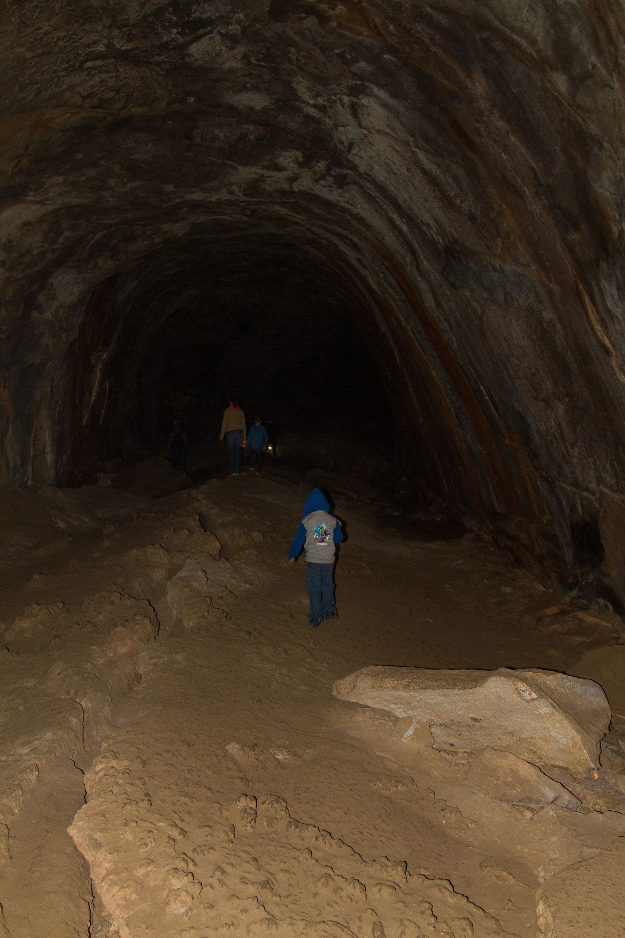 What makes this tube remarkable is its size. At some points, the ceiling arches more than 30 feet overhead, which is unusual in my experience. Most lava tubes feel cramped; this one has the scale of a subway tunnel. The tradeoff for that grandeur is darkness. One mile from the nearest light source, you'll understand the meaning of the word "black." Bring two or three light sources, because if one fails, you'll be feeling your way out.