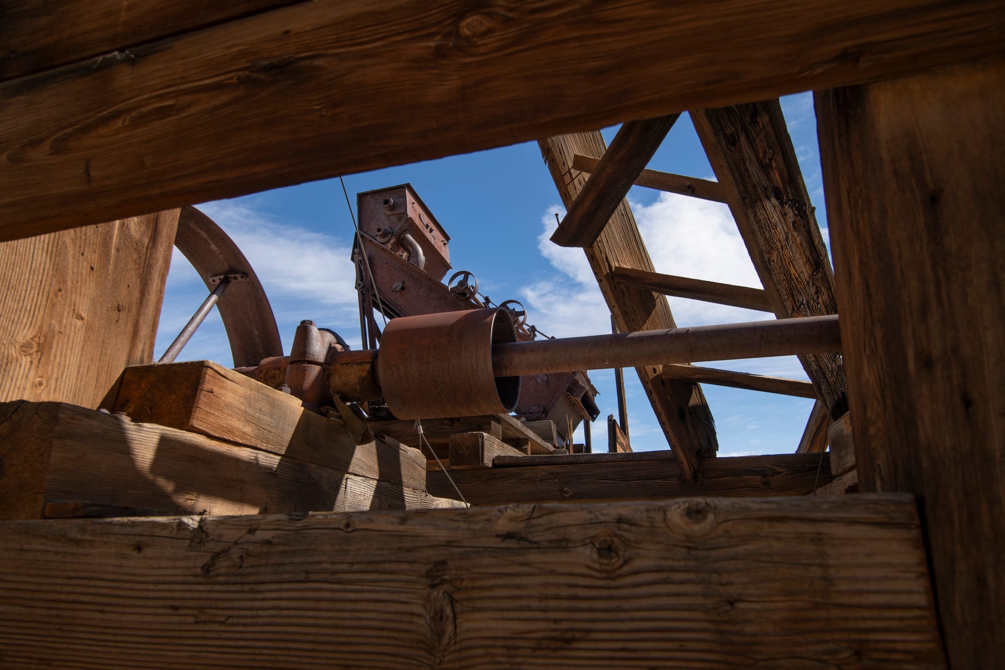 Around 1915, the Montana-Tonopah Company secured the property on a lease and bond, planning to do what no one else had managed: build a mill. They shipped a fifty-ton five-stamp mill from Bonnie Claire. Trucks hauled the machinery the first thirty miles from the railhead, and a Caterpillar tractor, crawling at three miles per hour, handled the last twenty-two. Water was piped from Burro Spring and Rest Spring on Tin Mountain, about seven and a half miles northeast. Sections of the pipeline are still visible along the White Top Mountain Road and at the mine site.