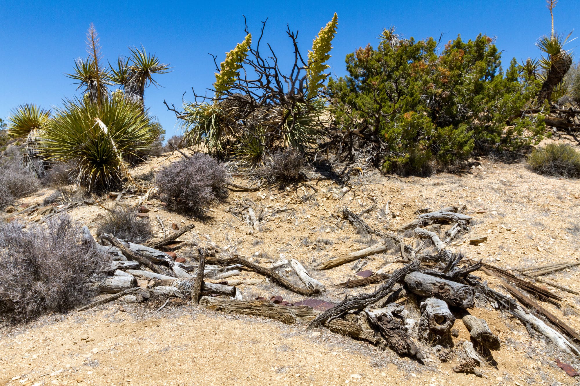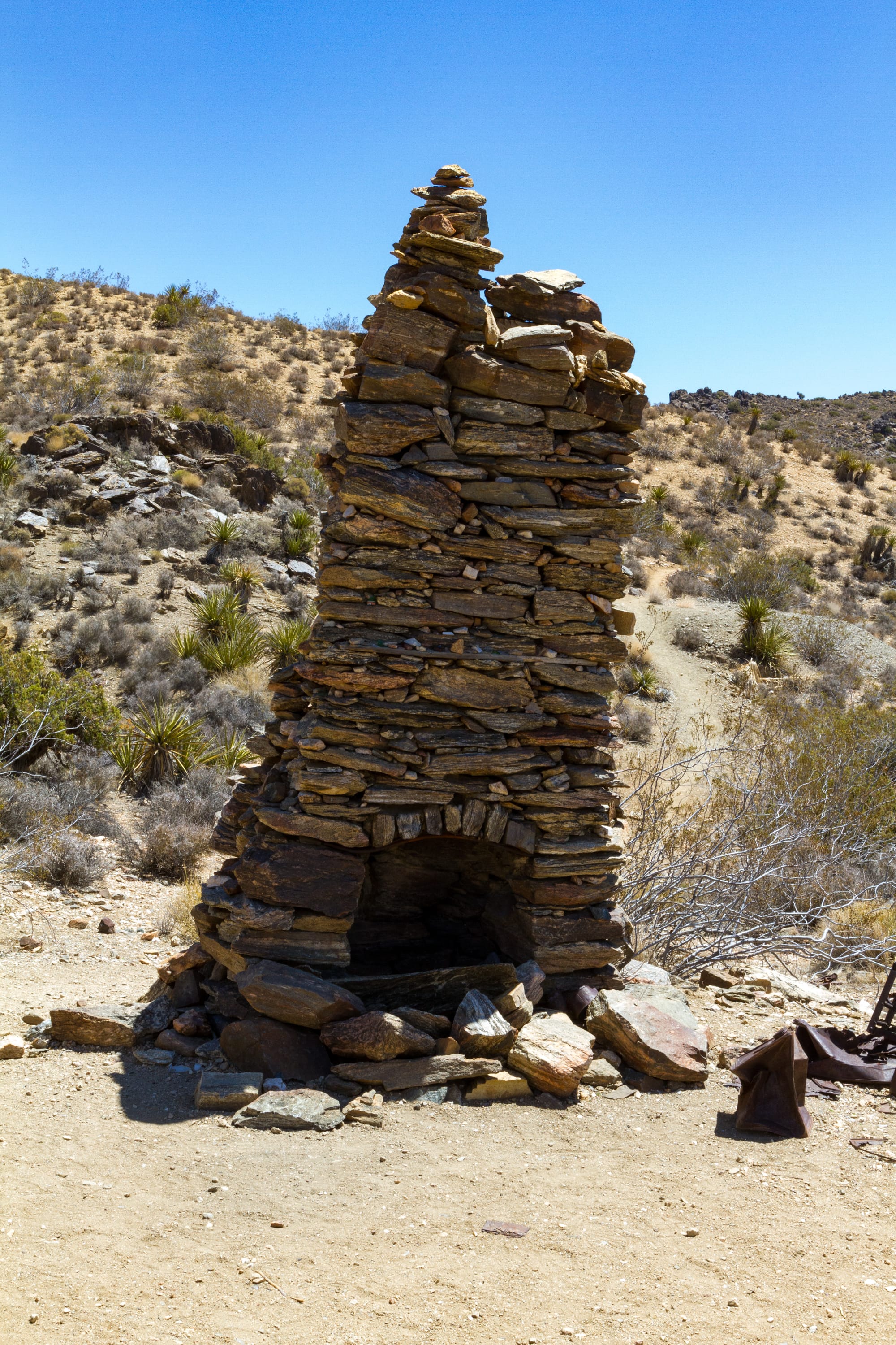 The Lost Horse Mine is well-known, but its history remains obscure to most. Few people hike the entire loop trail, missing out on a scenic trail with two other interesting prospects: the Optimist and the Gold Standard. Besides the Lost Horse's ten-stamp mill, the Optimist features an intriguing chimney, while the Gold Standard boasts the apparent remains of a cabin made from Joshua trees.