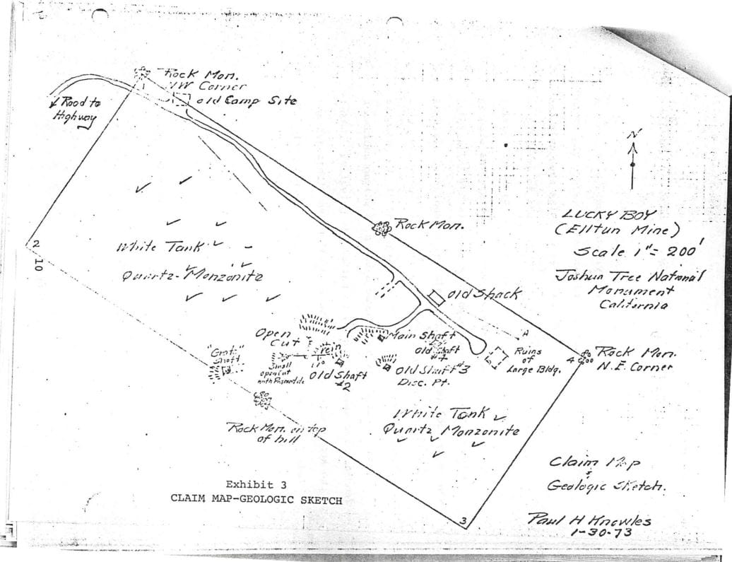 Thomas Munro and John Robinson located the Lucky Boy mining claim on July 7, 1922, in what would later become Joshua Tree National Park. Over the years, the claim changed hands several times. On July 22, 1940, Wilfred Tunstall acquired ownership.