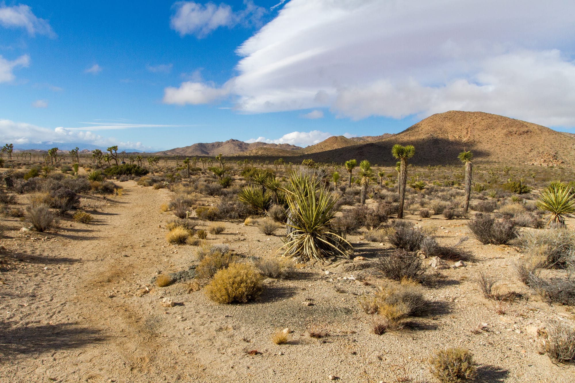 There isn't anything left of the Elton Mine. The NPS has reclaimed the site; the buildings have been removed, mine shafts gated, and even the mine dumps have been flattened out. Still, this is an interesting and scenic hike to do along with the Desert Queen Mine. It has a great view and a bit of mining history.