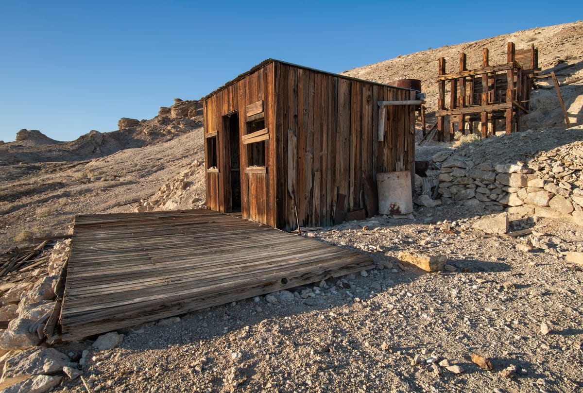 Just north of the well-known Keane Wonder Mine site lies Cyty’s Mill, a smaller, seldom-visited mill site and cabin. A short hike along the base of the Funeral Mountains will lead you past scenic Keane Wonder Springs to John Cyty’s 1910 cabin and mill, which processed ore from his Big