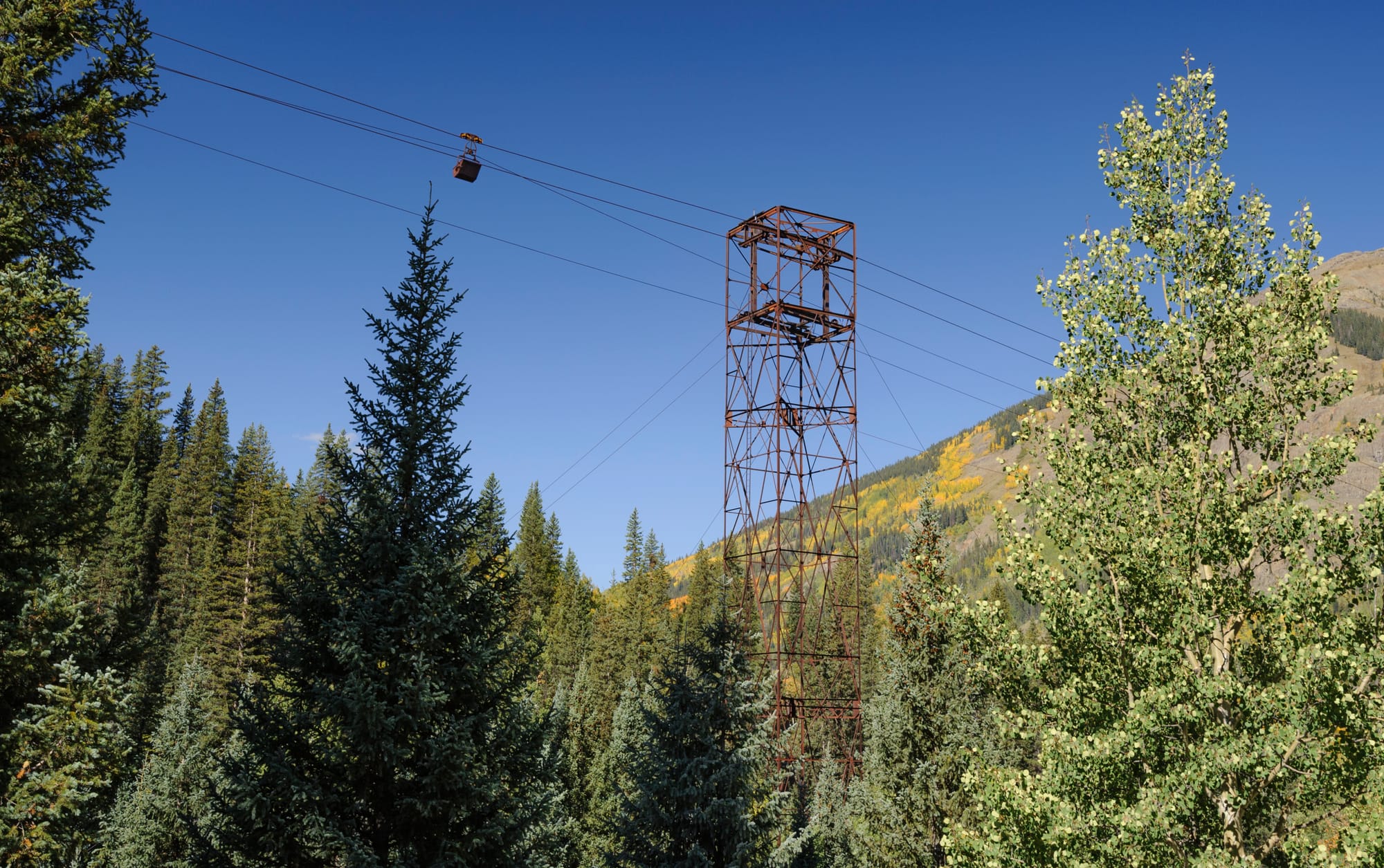 The heart of Chase's operation was a 10,000-foot aerial tramway designed by F.C. Carstarphen of Denver. This wasn't the typical wooden-tower setup common in Colorado mining districts. Chase demanded steel construction throughout: eleven towers using square frame design, two tension stations, one rail station, and track cables stretched under 35,000 pounds of tension. The buckets, mostly 1,450-pound capacity units on four-wheel carriages, moved at 500 feet per minute and could transport 55 tons of ore per hour with just five operators per shift.
