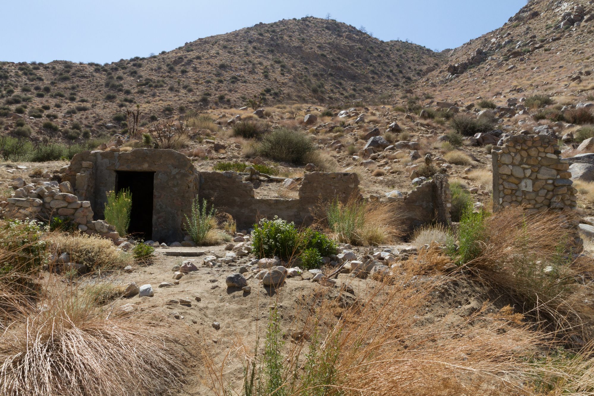 A couple of miles from the mouth of Pipes Canyon are the remains of a stone cabin. Swedish miner John Olsen (along with his partner Pete Lager) built it in the 1930s as a winter cabin for their mining operations. They worked the Onyx Mine up in the mountains high above the cabin.