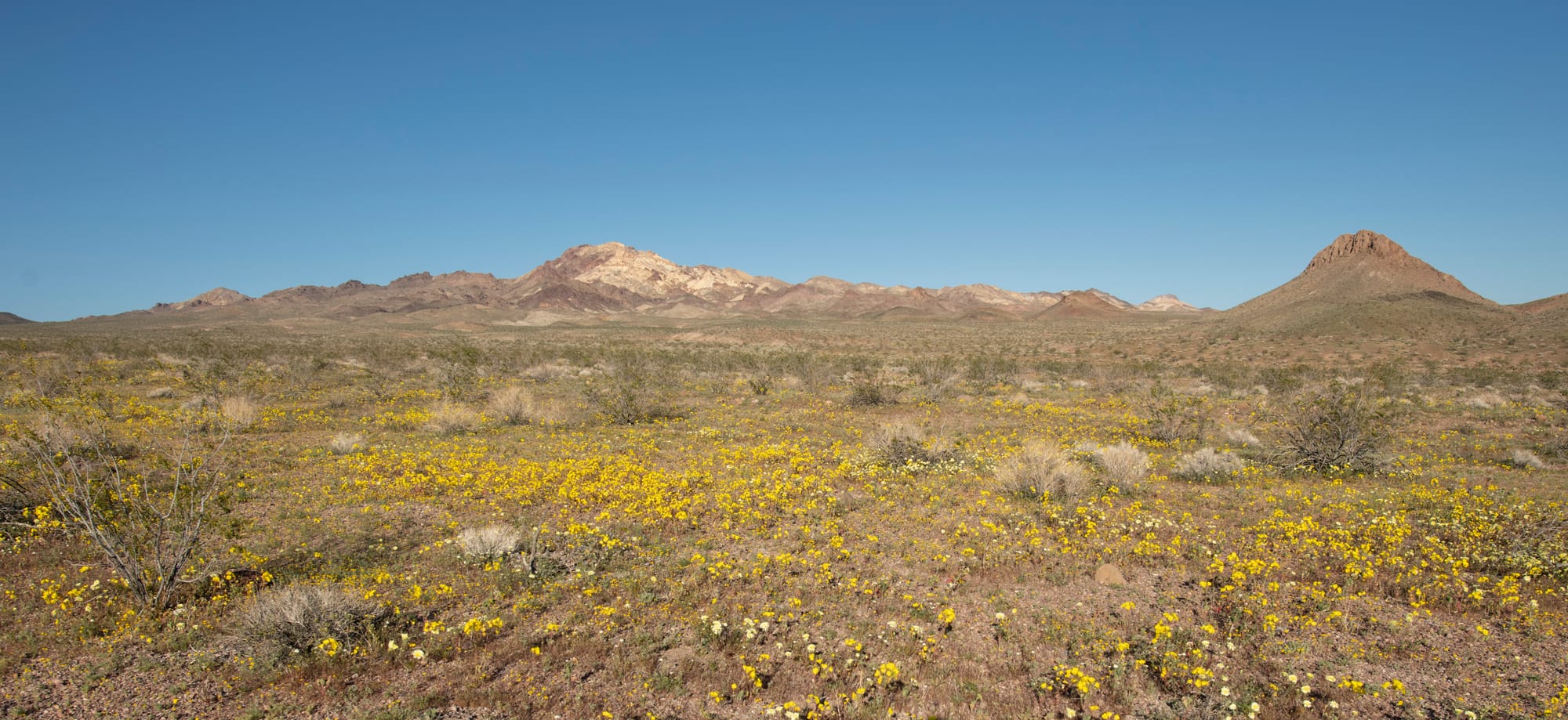 Although the mine was never very substantial, and little remains today, the hike is nonetheless a very enjoyable experience in the spring, especially in a good wildflower year. The hiking is easy, mostly on an old road, and the views are sweeping, dominated by dramatic Epaulet Peak as well as Salsberry Peak. This overlooked corner of the park sees few visitors. The washes and slopes from Jubilee Pass to Salsberry Pass can feature some of the best wildflower displays in the park, and this hike offers the chance to see them without the crowds.