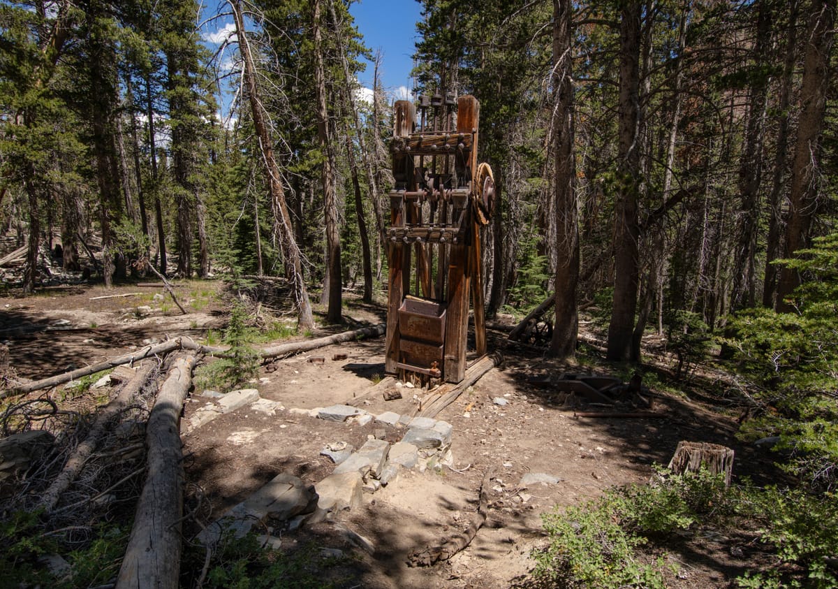 Hidden in a dense forest about a mile above Lake Mary (in the Mammoth Lakes area) lies a mysterious mill site dating back to the late 1890s. Although the passing years have not been kind to the mill, old foundations and a few unique mill artifacts remain today. The site can be reached with a short moderate hike, or incorporated into a more ambitious hike to any of the lakes accessed by the popular Duck Lake Trail.