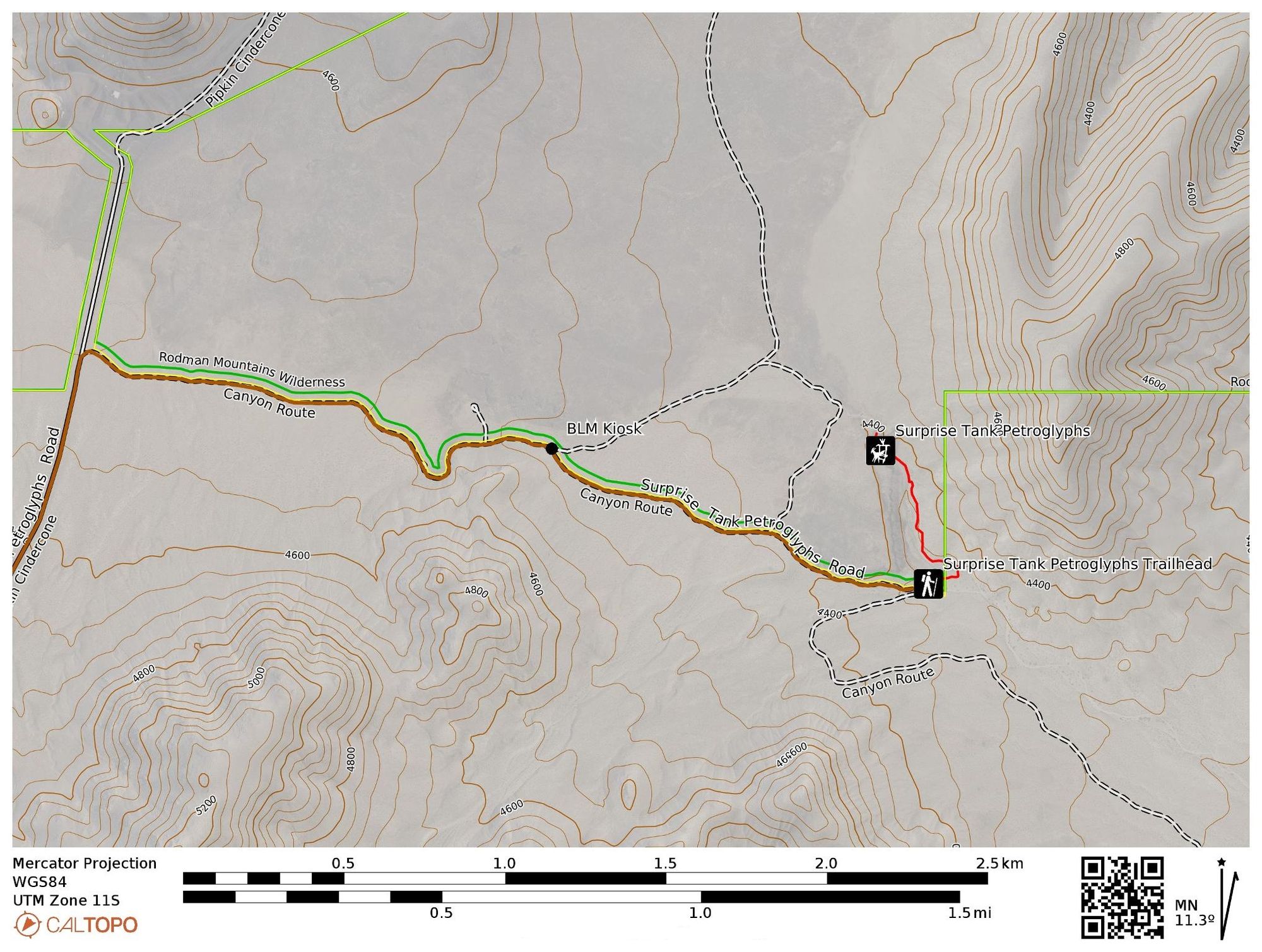 - Surprise Tank Petroglyphs: 34.6746°, -116.5948°